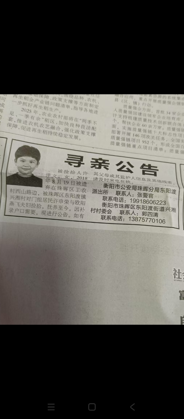 正文 失踪人员:许译文 admin V管理员 /04-15/1.64 K阅读/0评论 0415 失踪人员:许译文 (寻亲网编号:10714) 基本信息: 姓 名:许译文 性 别:女性 出生日期:2018.08.12 失踪日期: 失踪地点:湖南省衡阳市珠晖区西山区 失踪时身高:0.6 联系方式:15211467299 详细介绍: 信息图片: 寻人启事资料、照片等均由用户提供,如侵犯任何第三人肖像权、隐私权或其他合法权益,请联系本站删除!